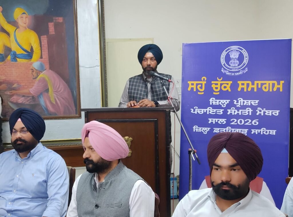ਸਥਾਨਕ ਬੱਚਤ ਭਵਨ ਫਤਹਿਗੜ੍ਹ ਸਾਹਿਬ ਵਿਖੇ ਦਸੰਬਰ 2025 ਵਿੱਚ ਹੋਈਆਂ ਪੰਚਾਇਤ ਸੰਮਤੀ ਅਤੇ ਜ਼ਿਲ੍ਹਾ ਪ੍ਰੀਸਦ ਚੋਣਾਂ ਦੇ ਜੇਤੂ ਉਮੀਦਵਾਰਾਂ ਨੂੰ ਸਹੁੰ ਚਕਾਉਣ ਲਈ ਜ਼ਿਲ੍ਹਾ ਪ੍ਰਸ਼ਾਸਨ ਵੱਲੋਂ ਸਮਾਰੋਹ ਰੱਖਿਆ ਗਿਆ। ਸਮਾਰੋਹ ਮੌਕੇ ਹਲਕਾ ਫਤਹਿਗੜ੍ਹ ਸਾਹਿਬ ਦੇ ਵਿਧਾਇਕ ਐਡਵੋਕਟ ਲਖਬੀਰ ਸਿੰਘ ਰਾਏ, ਹਲਕਾ ਬਸੀ ਪਠਾਣਾ ਦੇ ਵਿਧਾਇਕ ਸ੍ਰੀ ਰੁਪਿੰਦਰ ਸਿੰਘ ਹੈਪੀ, ਚੇਅਰਮੈਨ ਜ਼ਿਲ੍ਹਾ ਯੋਜਨਾ ਬੋਰਡ ਸ੍ਰੀ ਅਜੈ ਸਿੰਘ ਲਿਬੜਾ, ਵਧੀਕ ਡਿਪਟੀ ਕਮਿਸ਼ਨਰ(ਜ) ਸ੍ਰੀਮਤੀ ਪੂਜਾ ਸਿਆਲ ਗਰੇਵਾਲ ਨੇ ਸਮੂਲੀਅਤ ਕੀਤੀ।ਇਸ ਮੌਕੇ ਵਧੀਕ ਡਿਪਟੀ ਕਮਿਸ਼ਨਰ(ਵਿਕਾਸ) ਸ੍ਰੀ ਸੁਰਿੰਦਰ ਸਿੰਘ ਧਾਲੀਵਾਲ ਨੇ ਜ਼ਿਲ੍ਹਾ ਪ੍ਰੀਸਦ ਚੋਣਾਂ ਦੇ ਜੇਤੂ ਉਮੀਦਵਾਰਾਂ ਅਤੇ ਵਿਧਾਇਕ ਸਹਿਬਾਨ ਨੂੰ ਜੀ ਆਇਆਂ ਕਿਹਾ। ਉਨ੍ਹਾਂ ਪੇਡੂ ਵਿਕਾਸ ਤੇ ਪੰਚਾਇਤ ਵਿਭਾਗ ਦੀਆਂ ਸਕੀਮਾਂ ਅਤੇ ਚੱਲ ਰਹੇ ਵਿਕਾਸ ਕੰਮਾਂ ਦੀ ਵਿਸਥਾਰਪੂਰਵਕ ਜਾਣਕਾਰੀ ਸਾਂਝੀ ਕੀਤੀ।