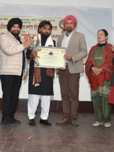 ਪਟਿਆਲਾ: ਨਟਰਾਸ ਆਰਟਸ ਥੀਏਟਰ ਪਟਿਆਲਾ ਅਤੇ ਕਲਾ ਕ੍ਰਿਤੀ ਪਟਿਆਲਾ ਵੱਲੋਂ ਸਾਂਝੇ ਤੌਰ ਤੇ ਆਯੋਜਿਤ ਕੀਤੇ ਗਏ ਆਪਣੇ ਸਲਾਨਾ ਸਭਿਆਚਾਰਕ ਅਤੇ ਸਨਮਾਨ ਸਮਾਗਮ ਦੌਰਾਨ ਸੂਫੀ ਗਾਇਕ ਅਤੇ ਪਟਿਆਲੇ ਘਰਾਣੇ ਦੀ ਸਾਂਭ ਸੰਭਾਲ ਕਰਨ ਵਾਲੇ ਸਨੀ ਹੰਸ ਨੂੰ ਸੈਂਟਰ ਸਟੇਟ ਲਾਇਬਰੇਰੀ ਦੇ ਹਾਲ ਵਿਖੇ ਸਾਲ 2025-2026 ਦੇ ਅਵਾਰਡ “ਸਾਡਾ ਪਟਿਆਲਾ —- ਸਾਡਾ ਮਾਣ” ਨਾਲ ਸਨਮਾਨਿਤ ਕੀਤਾ ਗਿਆ। ਉਹਨਾਂ ਨੂੰ ਇਹ ਸਨਮਾਨ ਪ੍ਰਸਿੱਧ ਸਮਾਜ ਸੇਵੀ ਅਤੇ ਪੰਜਾਬ ਫੂਡ ਗਰੇਨ ਕਾਰਪੋਰੇਸ਼ਨ ਲਿਮਿਟਡ ਦੇ ਚੇਅਰਮੈਨ ਸਰਦਾਰ ਬਲਜਿੰਦਰ ਸਿੰਘ ਢਿੱਲੋ ਨੇ ਭੇਂਟ ਕੀਤਾ।